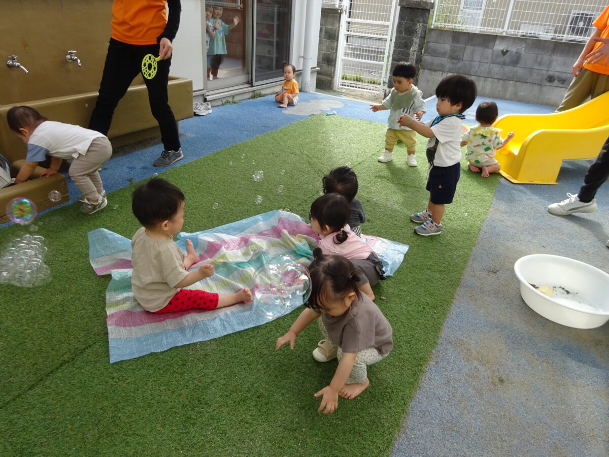 つくし組 中庭でシャボン玉をしました。