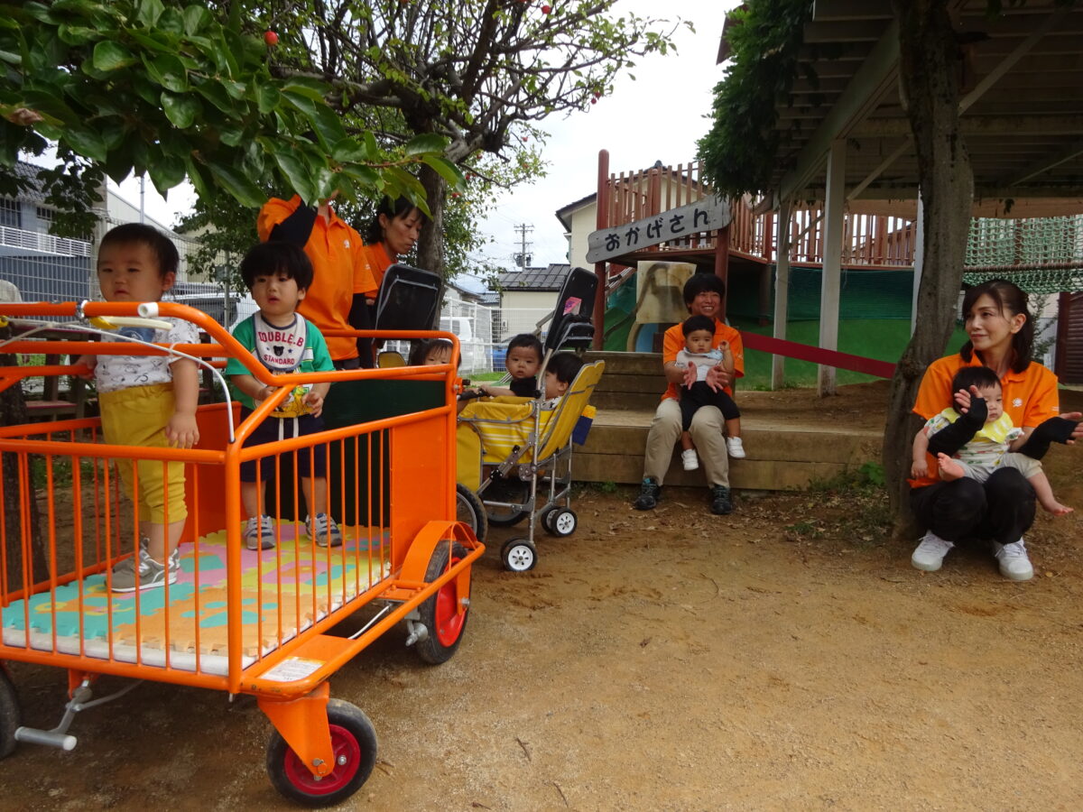 つくし組 園庭に運動会の練習を見に行ってきました。