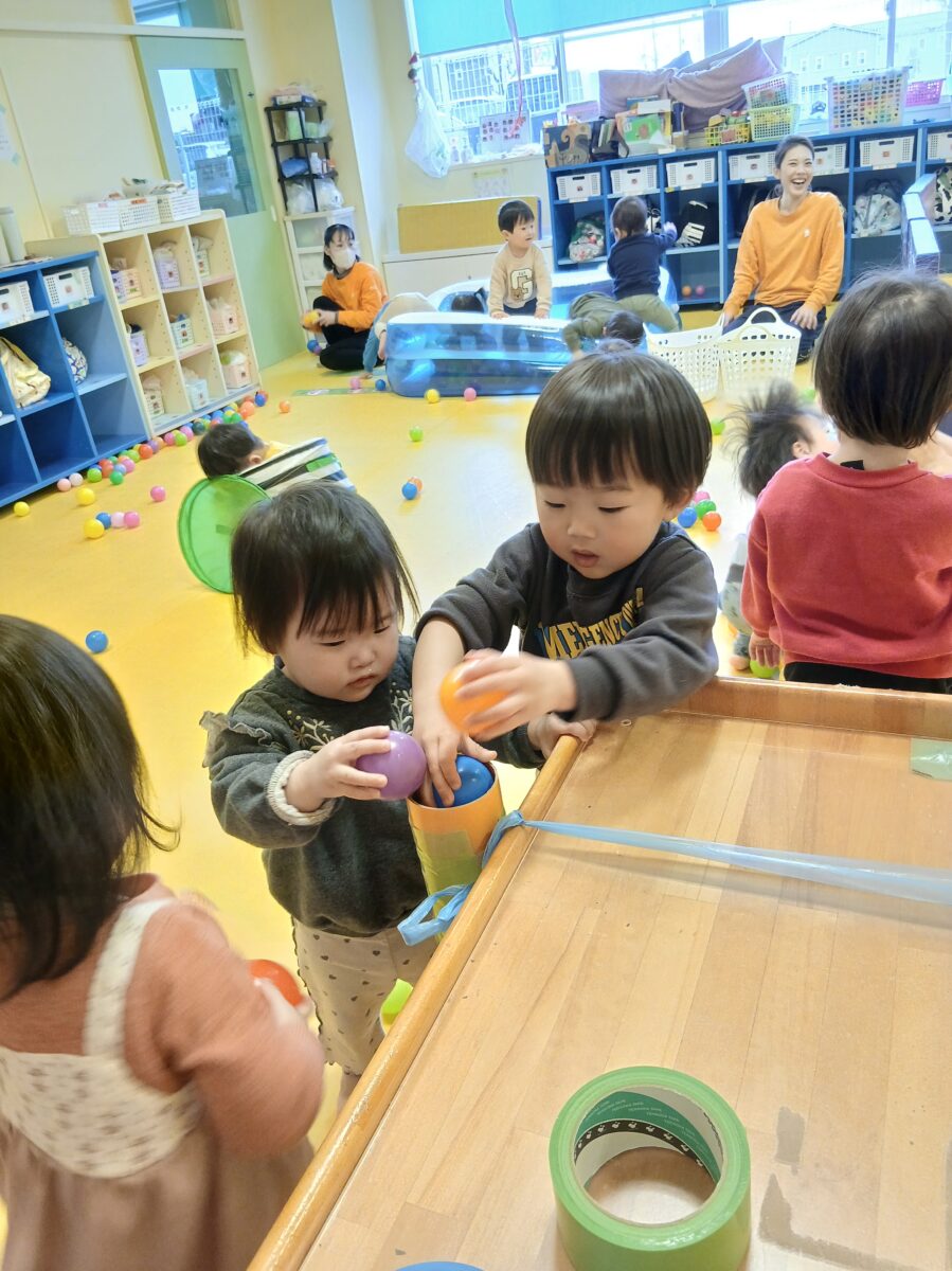 すみれ組。たくさんのボールで!