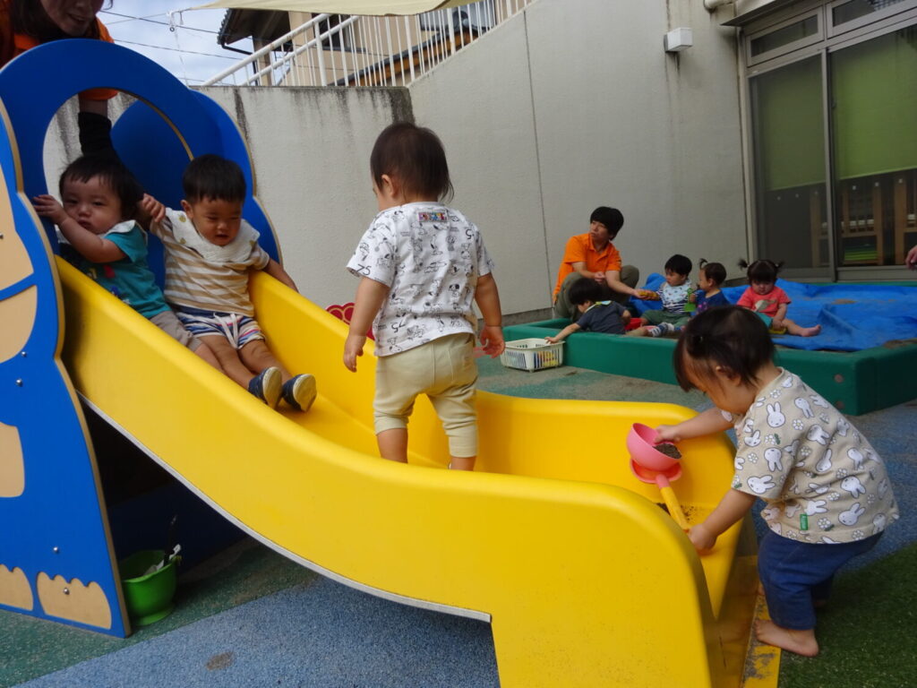 いろんな物に興味があり水道を触って水を出してみようしたりホースを引っ張って出したりしている子もいていろんな物が気になるんだなと思いました。