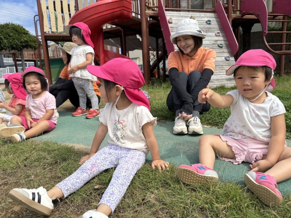 あそんでいると、年少さんが運動会での競技を行っていました!みんながんばれーと応援していました!