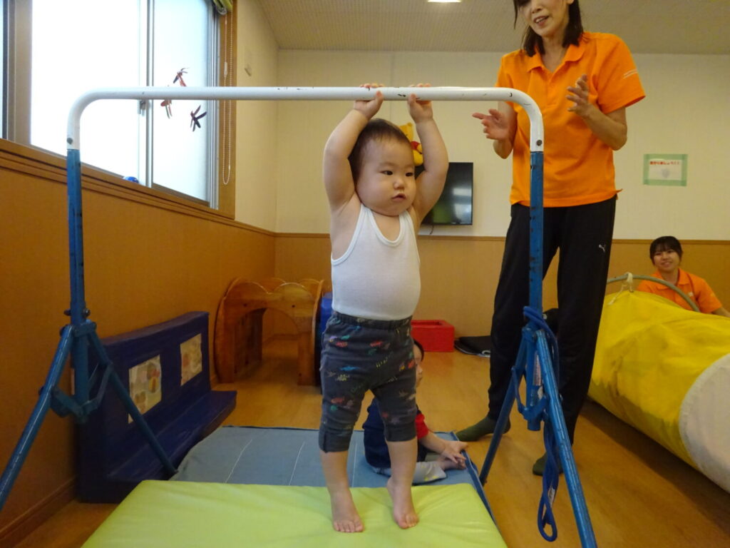 先生がトンネルを覗くと嬉しそうにハイハイしてきたり繰り返し「ばあー」としてきたりしてとても楽しそうな様子でした。
