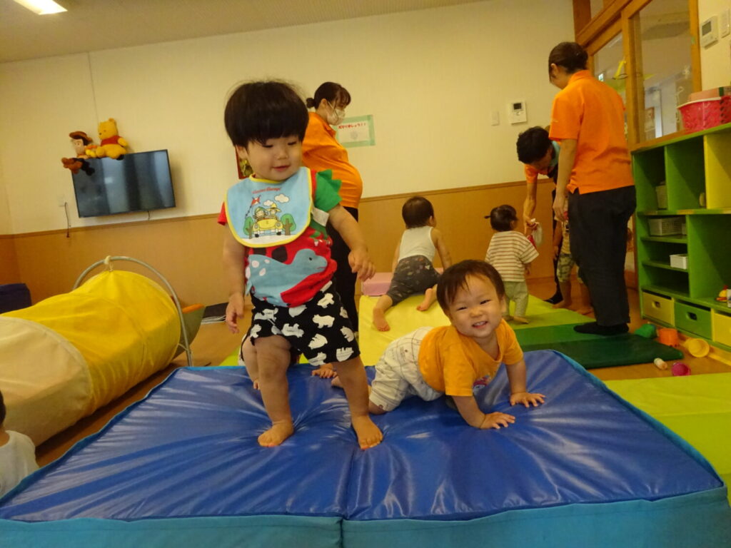ふかふかのマットを出すとみんなそこに乗って思いっきりジャンプ!