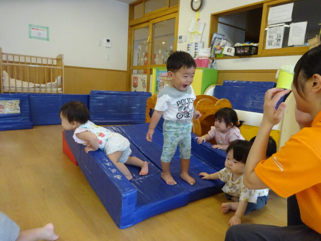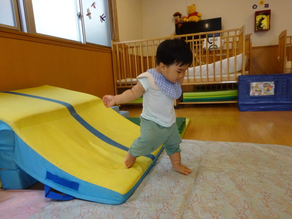 今日は雨だったのでお部屋でおままごとや滑り台などをしてあそびました。
