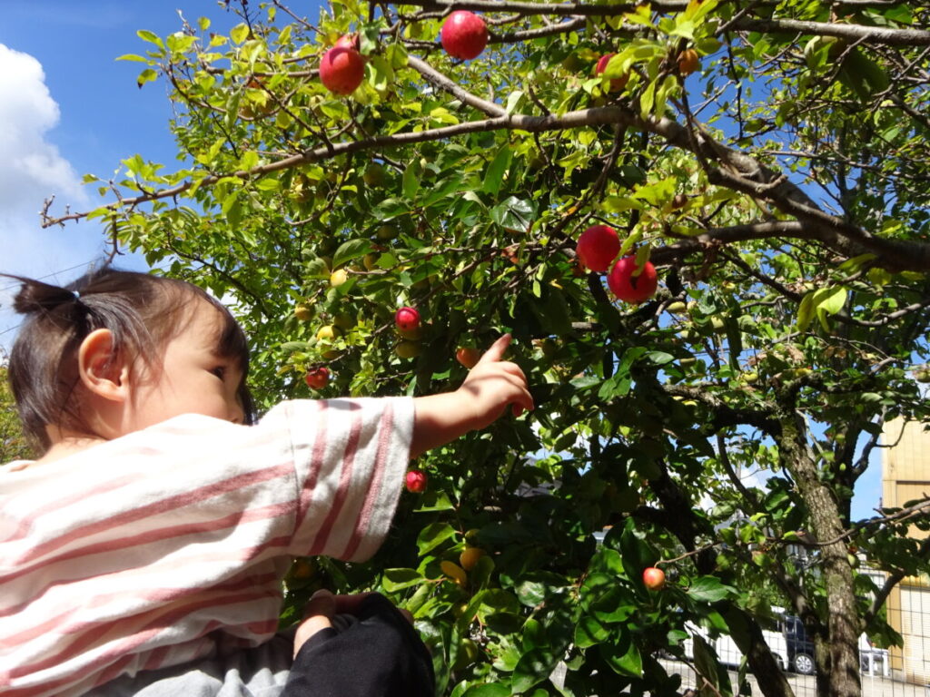 園庭にはすっかり赤くなったリンゴが!! 美味しそうだね(^^♪