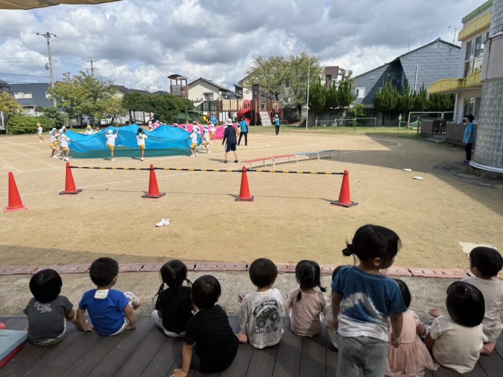 みんな音楽に、のり、パラシュートが浮き上がると、わ~!!!とテンションがあがっていたちゅうりっぷ組さんです!