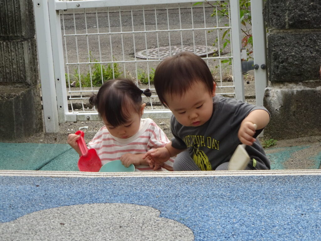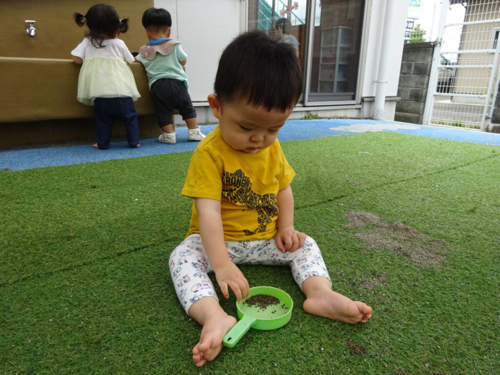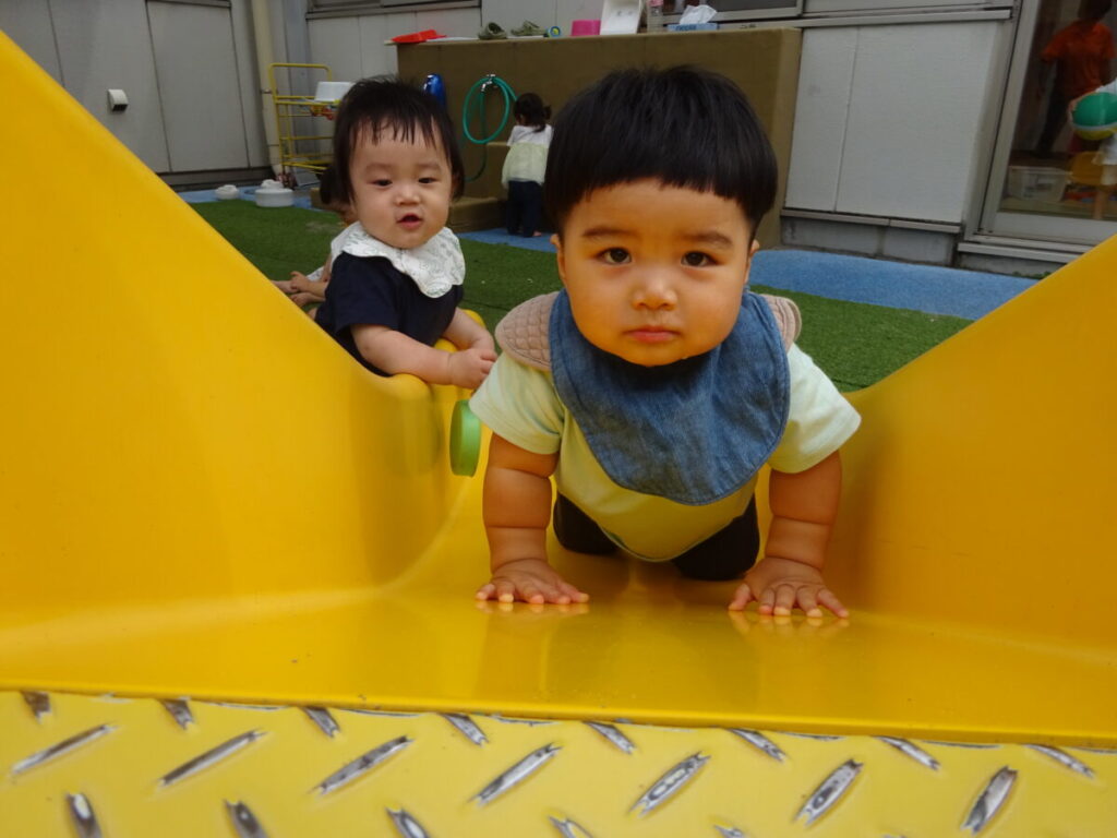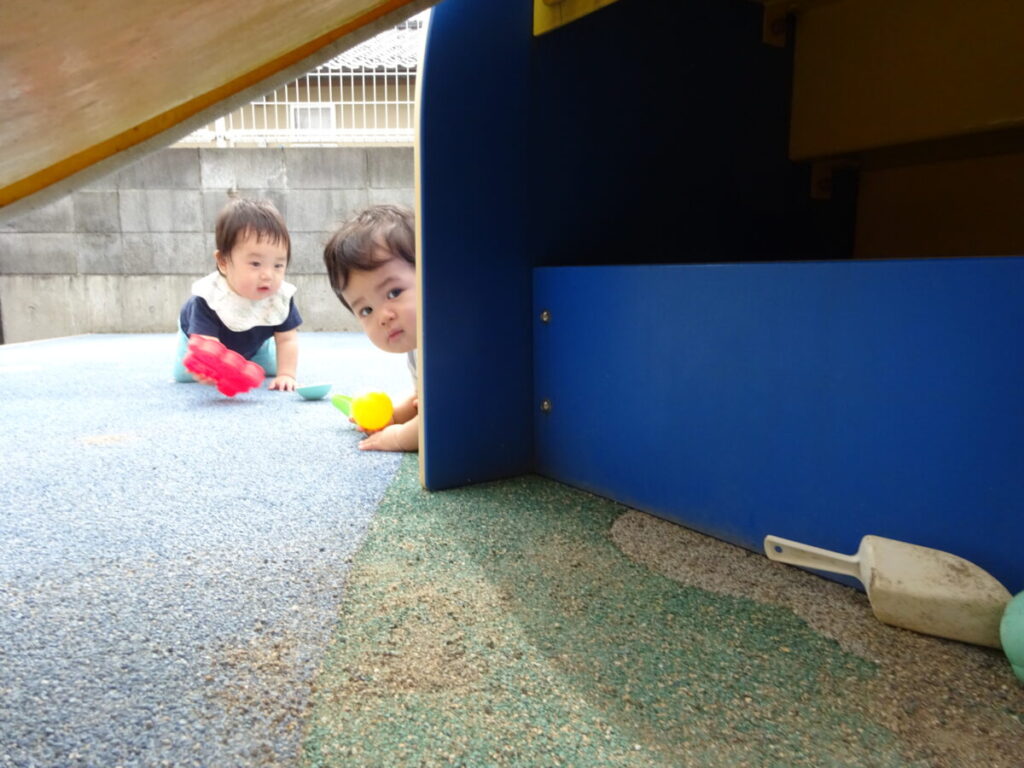 中庭が初めてのお友だちもいますが、興味津々にハイハイをしたりキョロキョロと周りを見渡してみたりして楽しんでいましたよ(^^♪