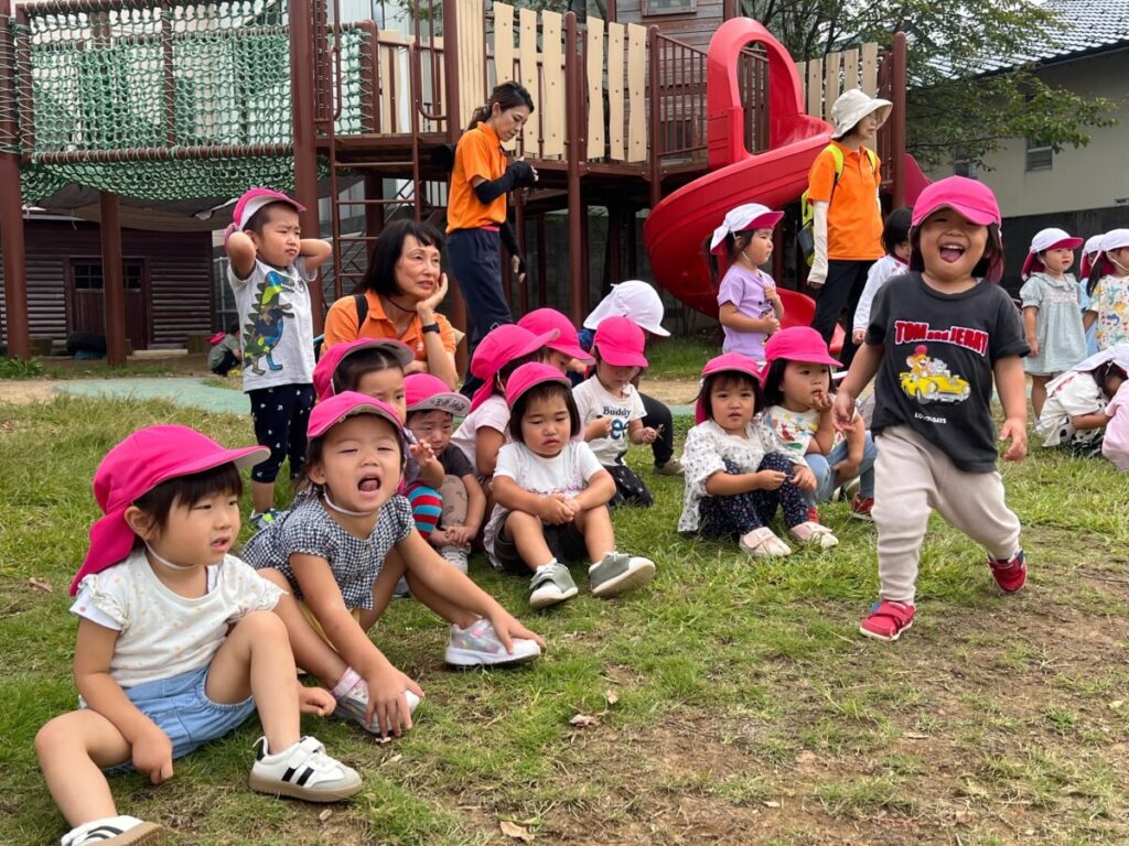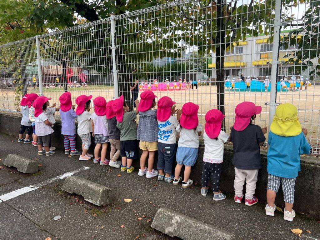 幼稚園につくと年長さんがパラバルーンをしていました!