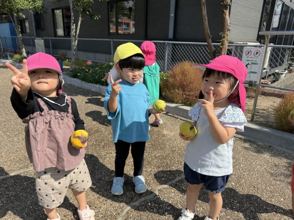 散策していると「りんごー!!」と走って見せてくれました。本当はりんごではなく、「かりん」です(笑)