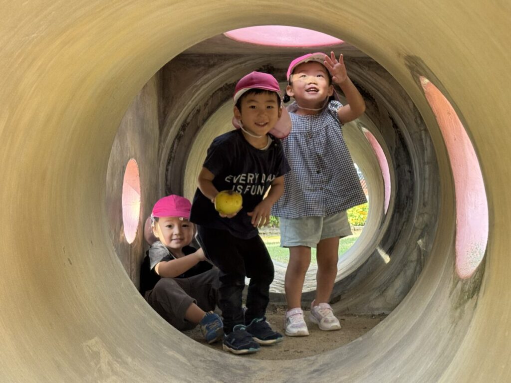 小さなりんごも別の所にあり、持って帰っている子もいます。