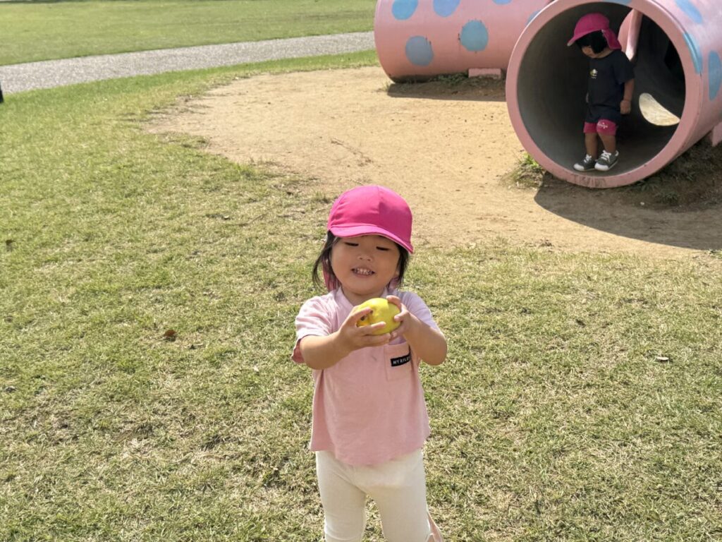 今日は初めての公園!いつもよりも長い距離ですが、歩くのも上手になってきたので、ふれあい公園まで歩いて行ってきました!