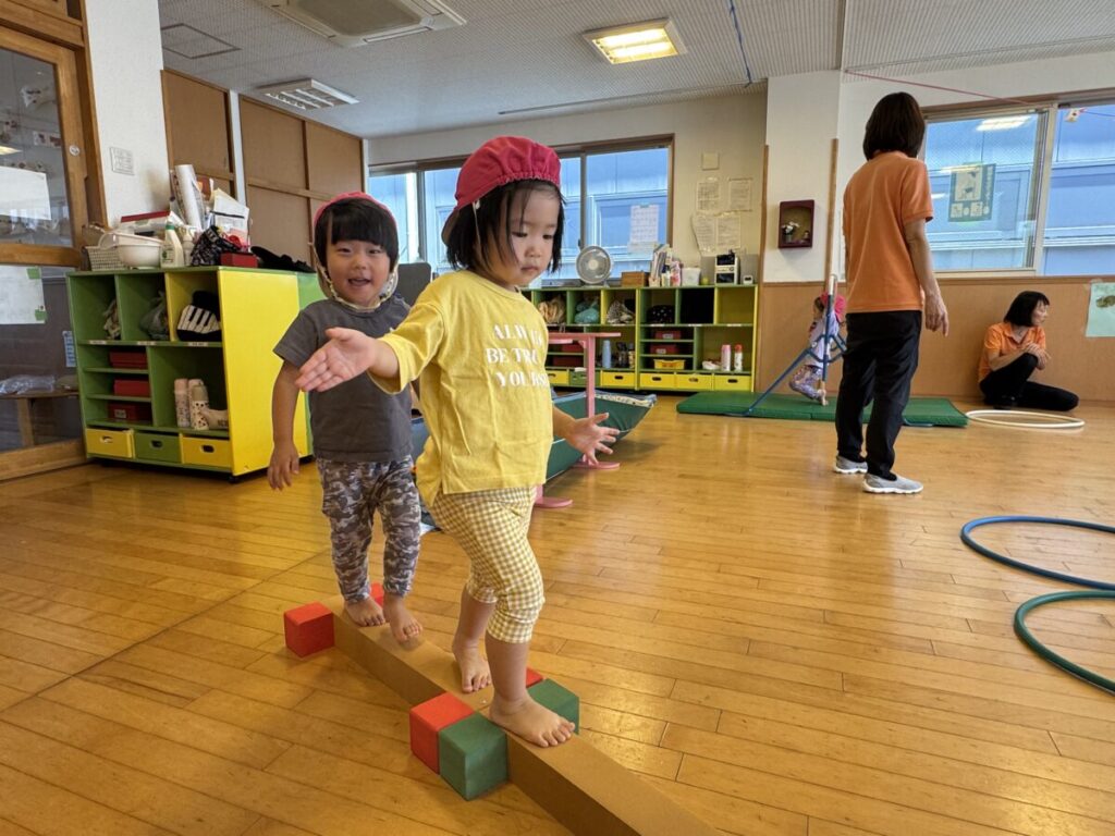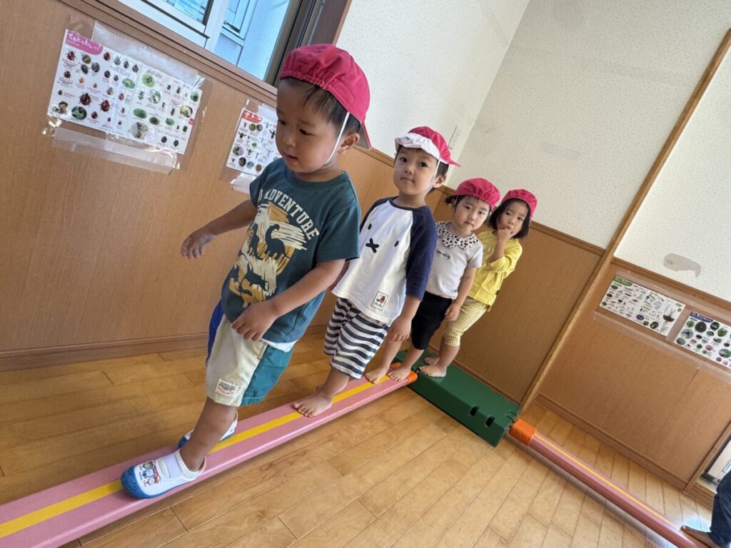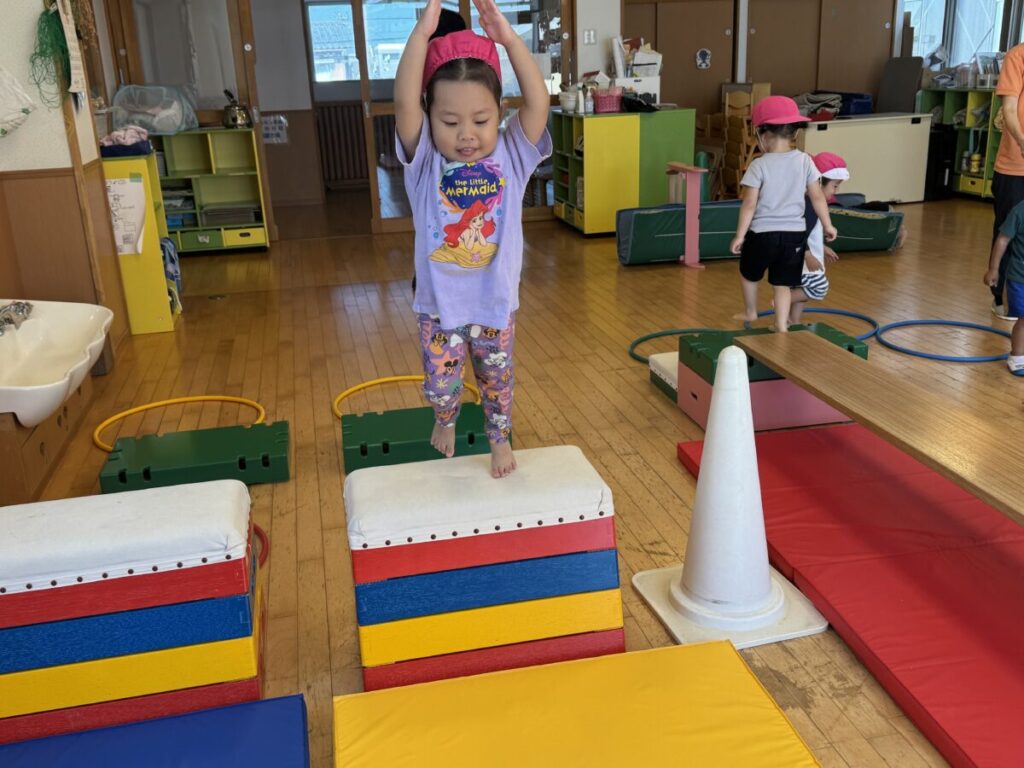 お部屋に戻って体育あそび!今日もウェルネスの先生のサーキットです
