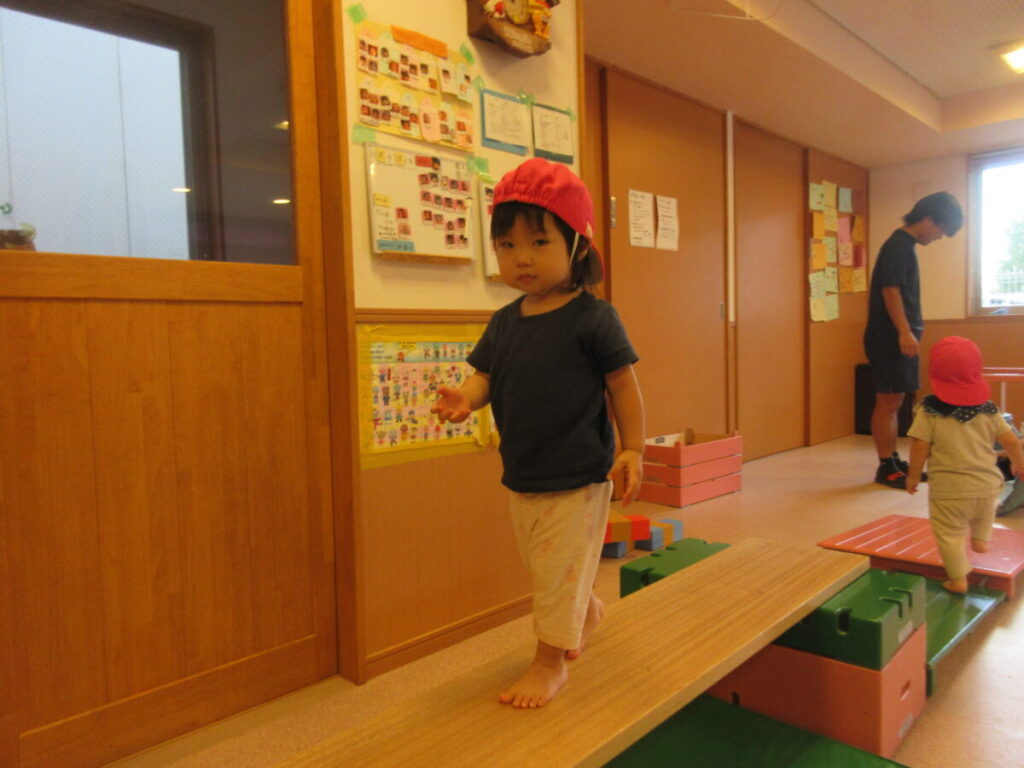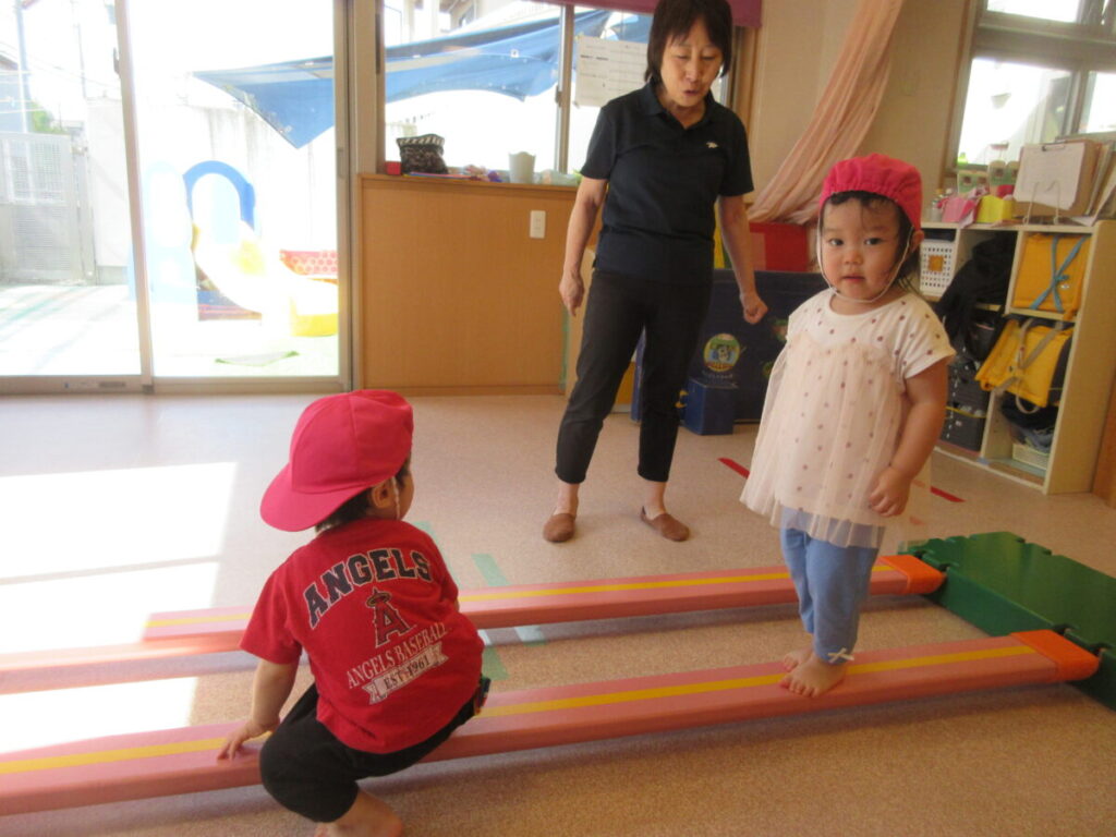 一本橋をコーンがなくても、子どもたちなりにわたっている姿が。