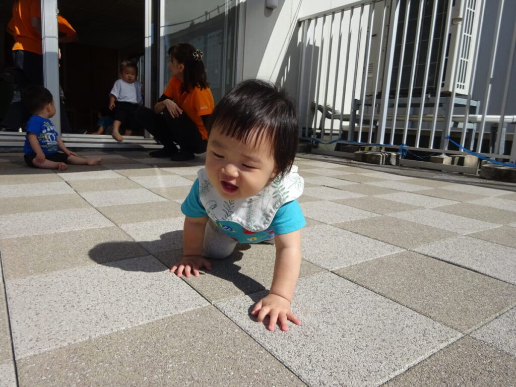 今日は2歳児さんは遠足でお留守です。ちょっとお部屋とベランダをお借りすることにしました。
