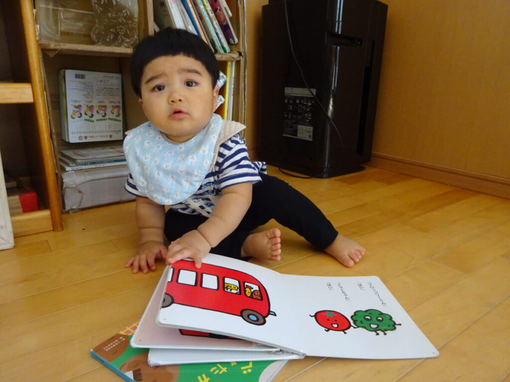 つくしのお部屋にない絵本にも興味津々です(*^-^*)