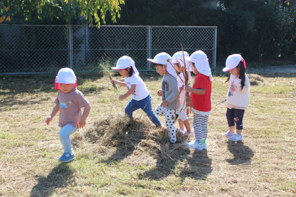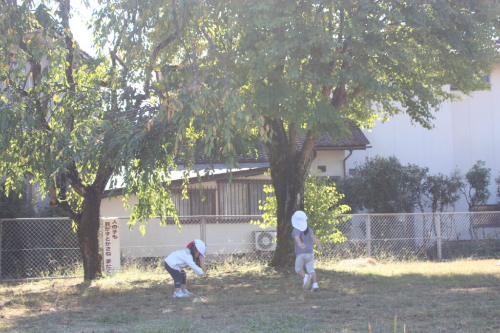 ざくろの実が落ちていて、(園に戻ったのちトラブルのもととなるのですが…)