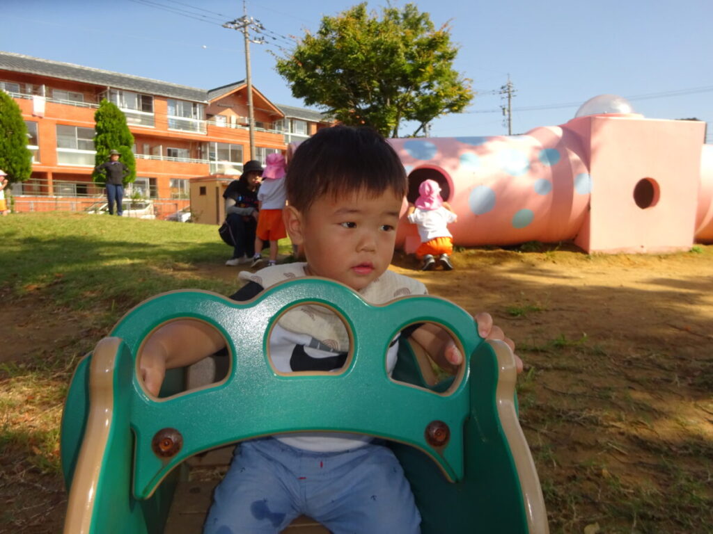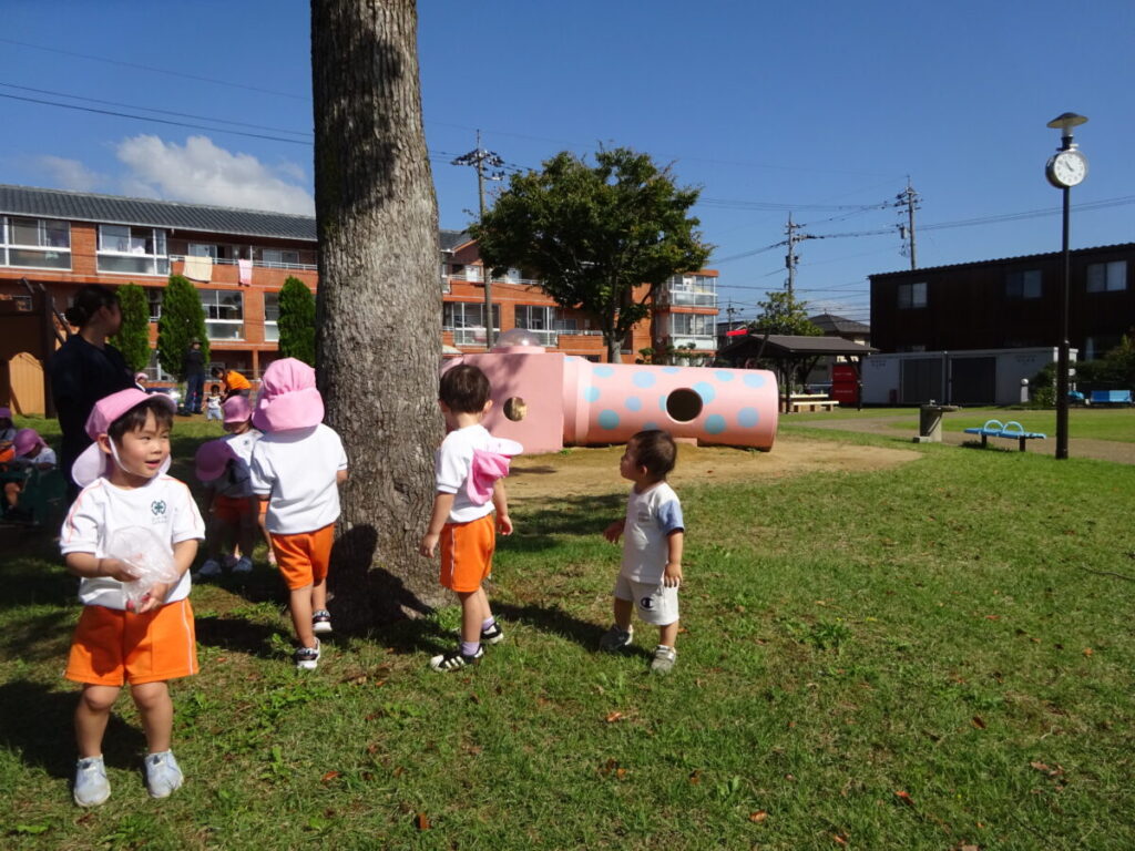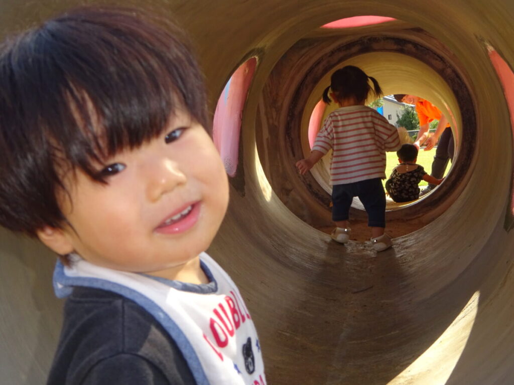 トンネルに他の幼稚園のお友だちが入っていた時は、うらやましそうに見ていたのですが、違う所に行くと、待ってましたとばかりにみんなトンネルの中へ(^^♪