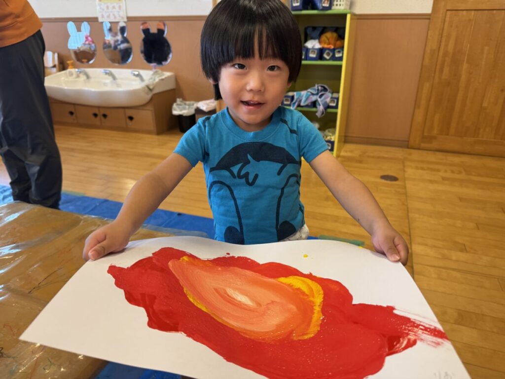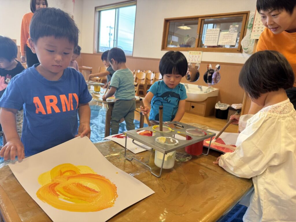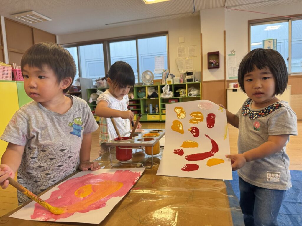 「わ~ピンクになってきた!!」「オレンジ!」と色の変化にも気づき、驚いたり、喜んだり、集中したり。