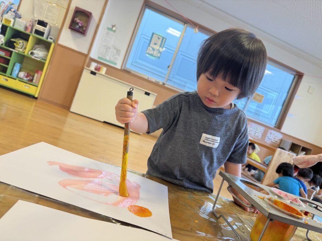 筆の涙をふくのを伝えると、しっかりと覚え、絵を描きながらもちょんちょんと、筆の雫を落としてから描いていました!