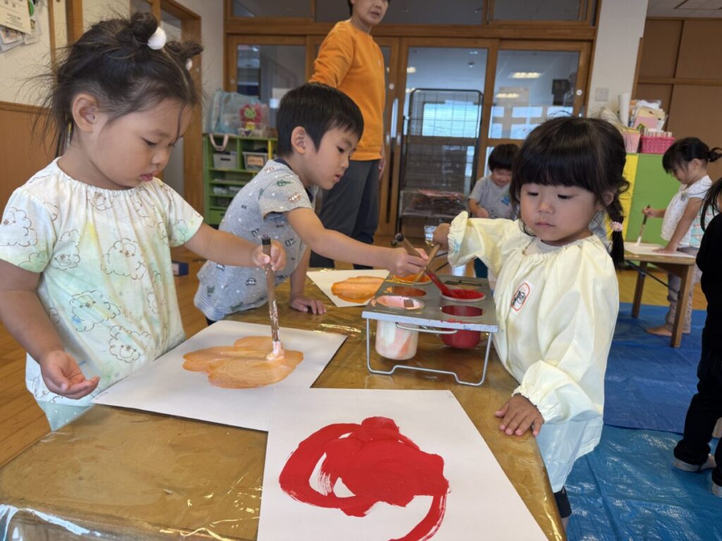 えのぐする!!と意欲満々の子どもたち。お約束覚えているかな??と聞き、きちんと色のお家に戻すことはばっちりでした!