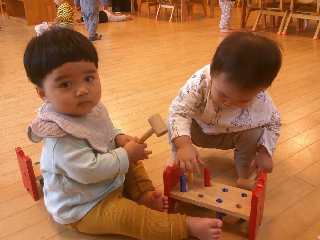 お友達が遊んでいるのが気になり取り合いになったり真似をしたりと少しずつ自我が出て来ているなと感じます。