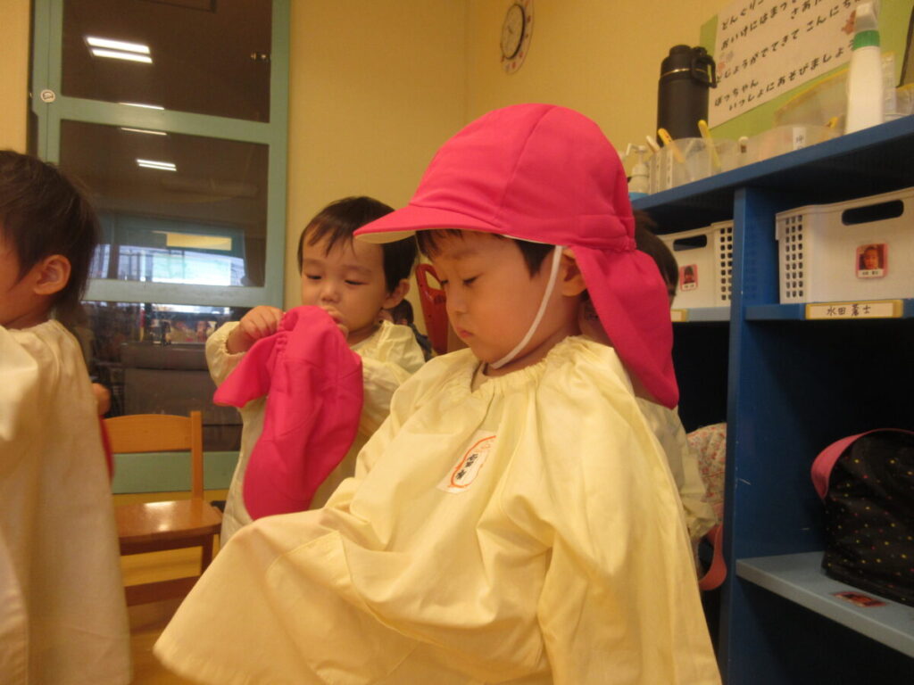 スモック自分で着られるかな?