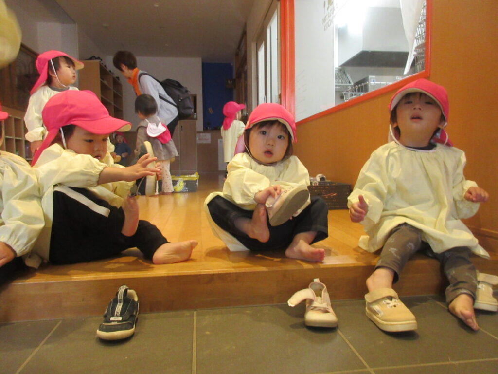 自分で外履きを履いてみよう!と悪戦苦闘中。