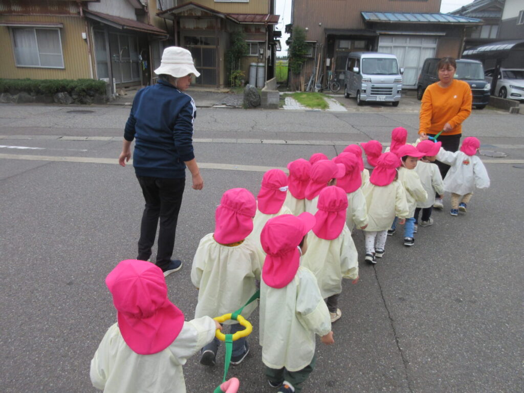 道路を渡るお約束をしっかりと守りながら歩きました。