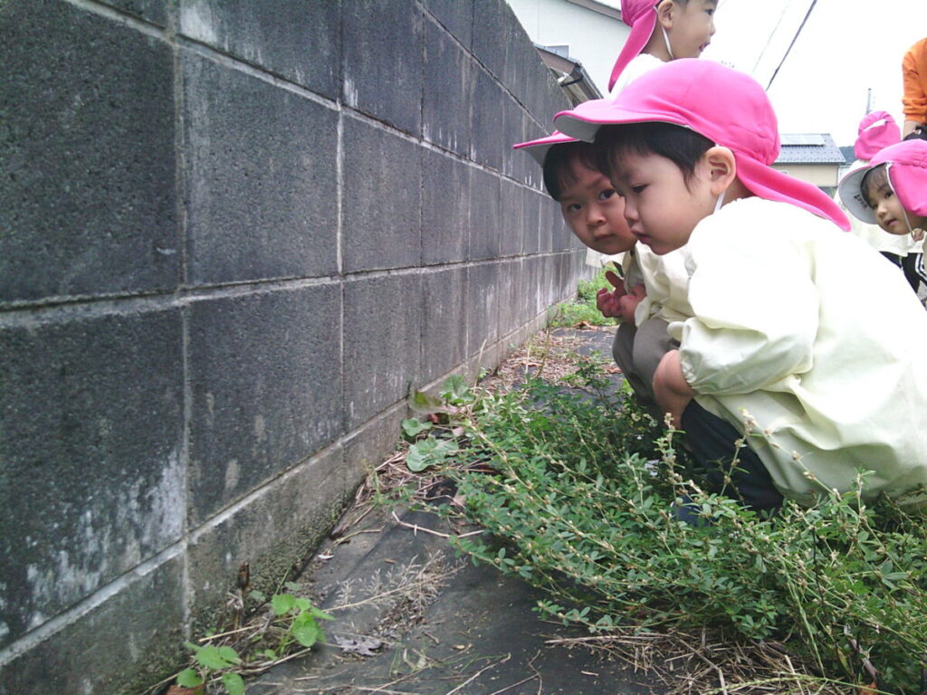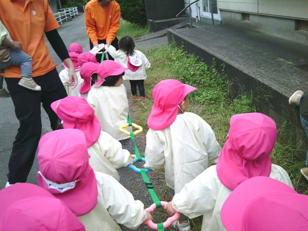 今日は園の裏道をお散歩です。