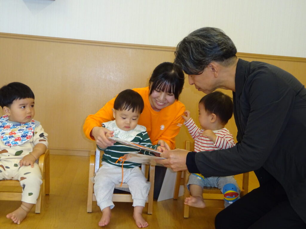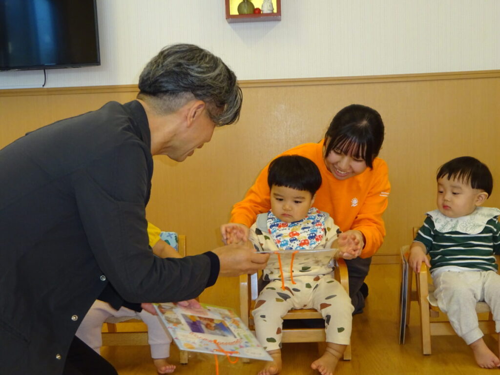 園長先生がお部屋に入ってこられると、びっくりした様子で涙が出てきたお友だちもいました。