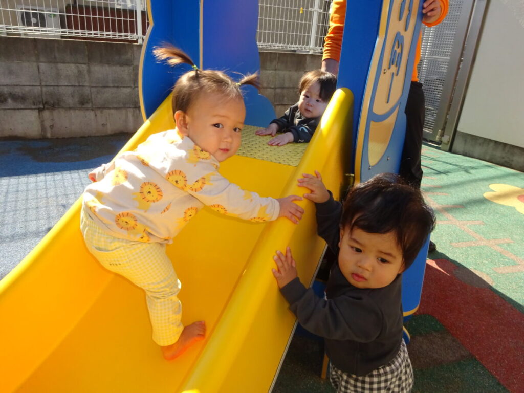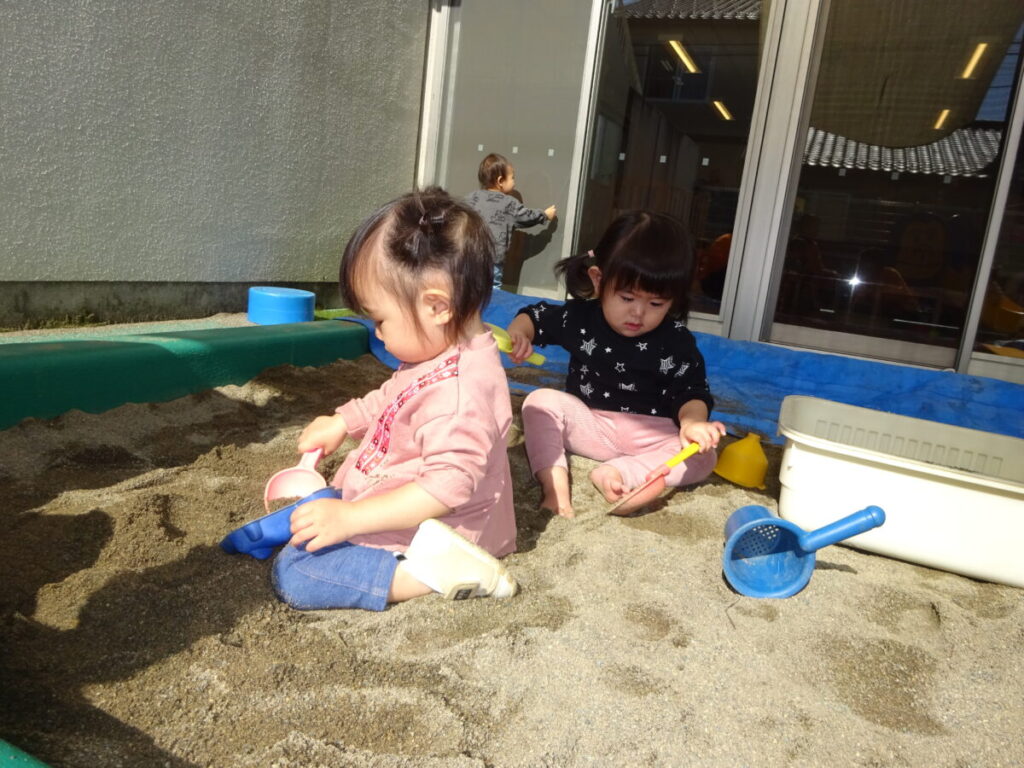 中庭で砂遊びや滑り台を思いっきり楽しみましたよ(^^)/