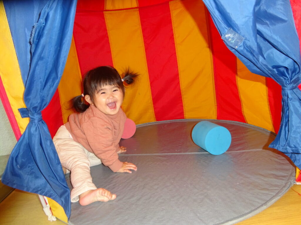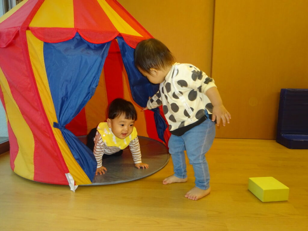 テントハウスに入ったり出たりを楽しんでいたお友だち