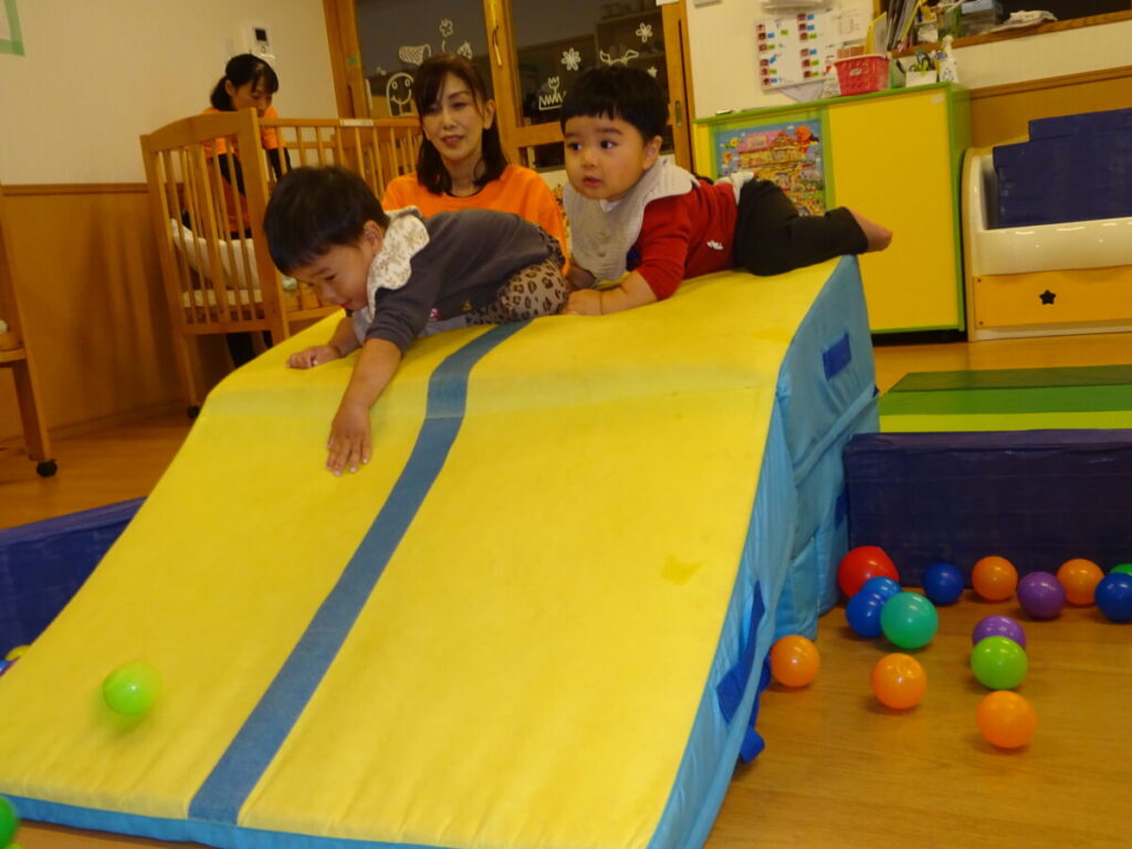 コロコロコロ・・滑り台を使って転がしたり、一緒に滑ったり!楽しいねー(^O^)