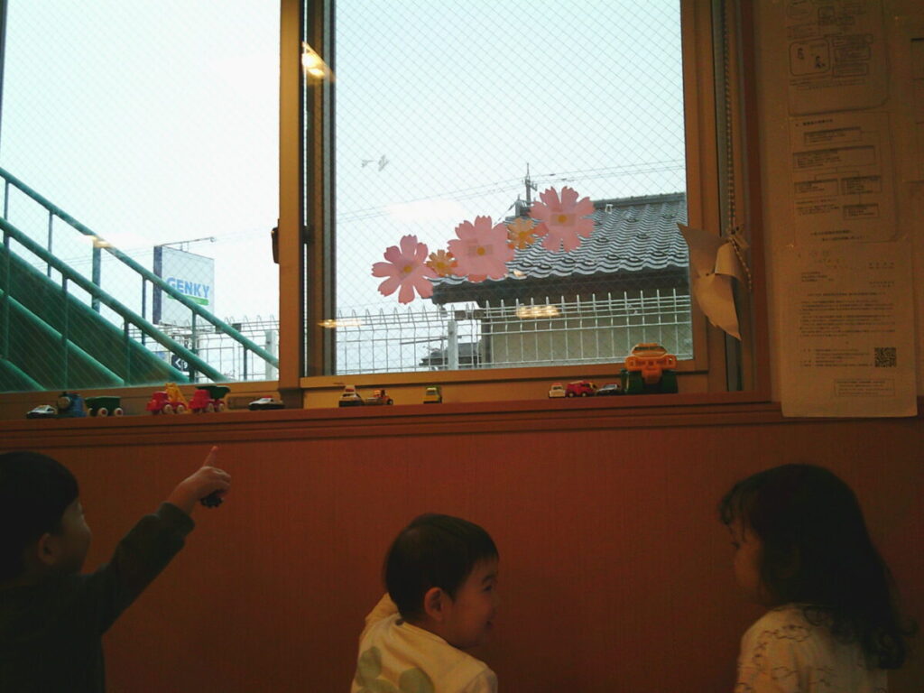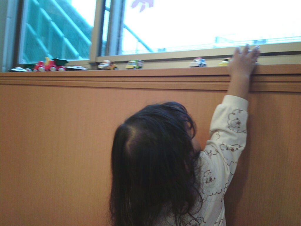 お友だちが車を一台ずつ窓枠に乗せ始めました。