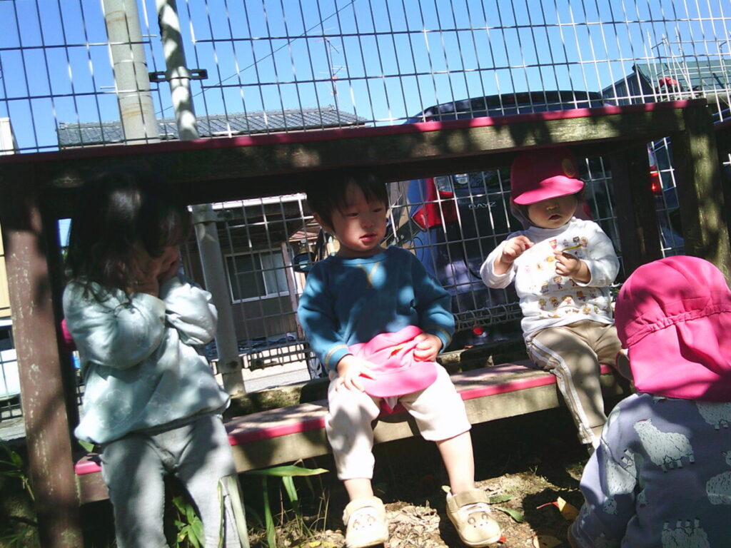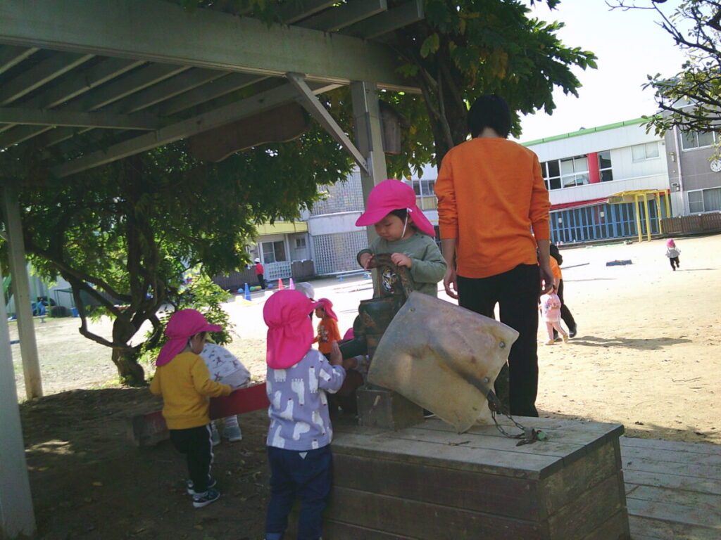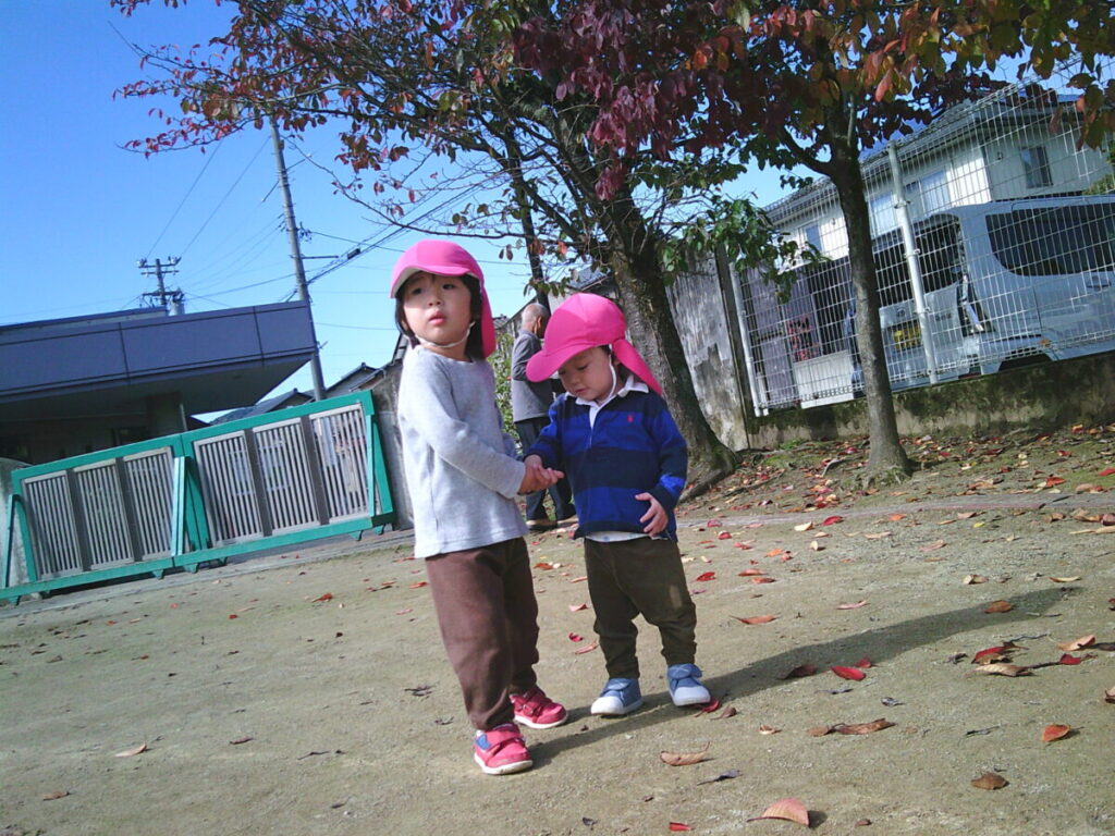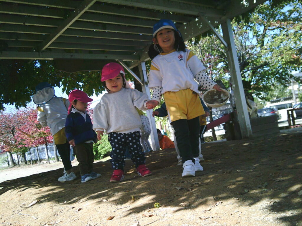今日は異年齢保育で、ちゅうりっぷさんと一緒に園庭に行きました。