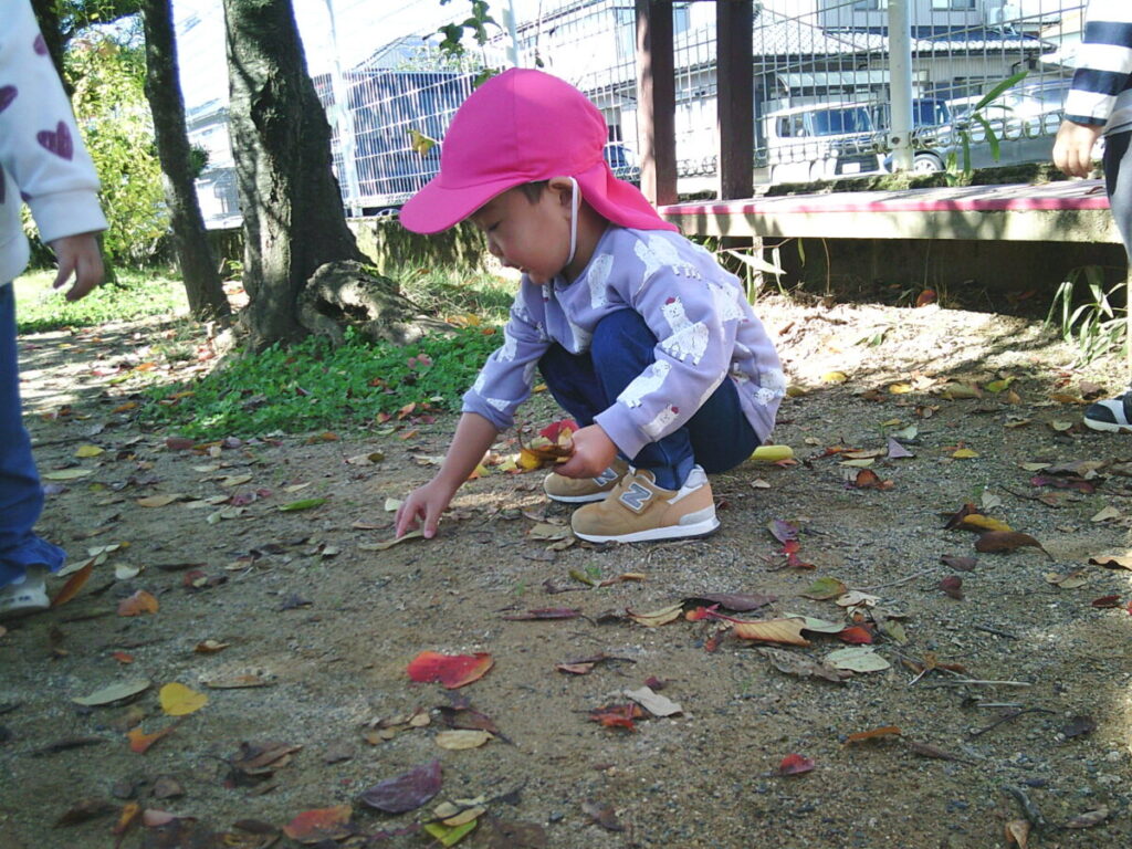 色々な色の葉っぱを見つけて…。大事そうに持って帰っていました。