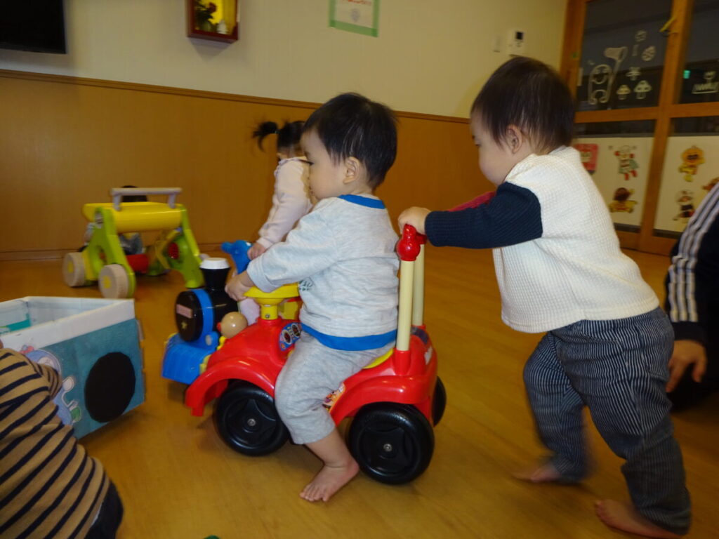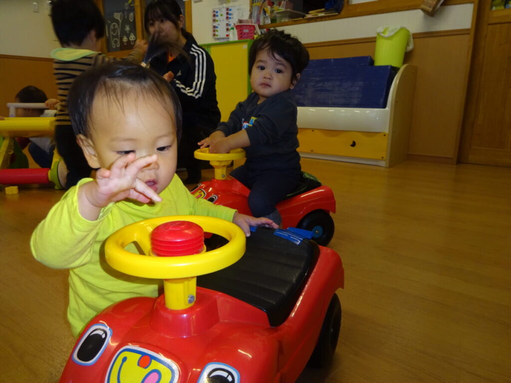 みんな大好きな車です!自分で動かせるお友だちは、足で上手に動かしていましたよ(*^-^*)