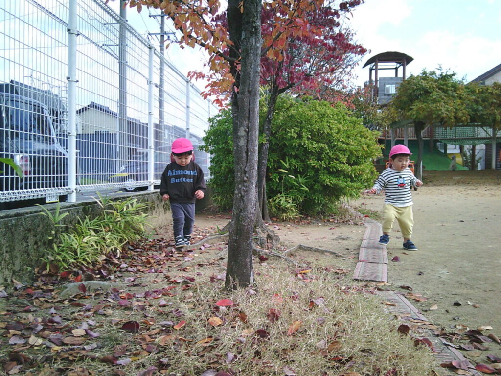 園庭には色々な色のはっぱちゃん(葉っぱ)がいっぱい。