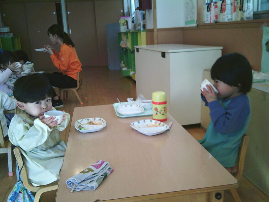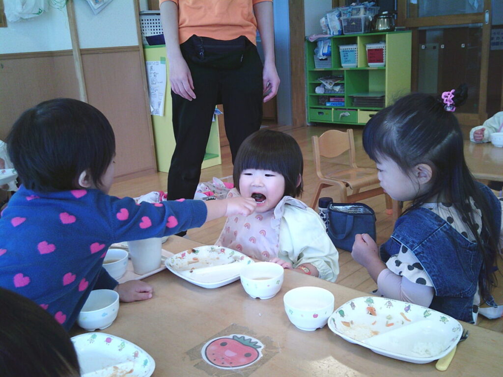 さて、無事に幼稚園に帰り、給食もご一緒に…♡