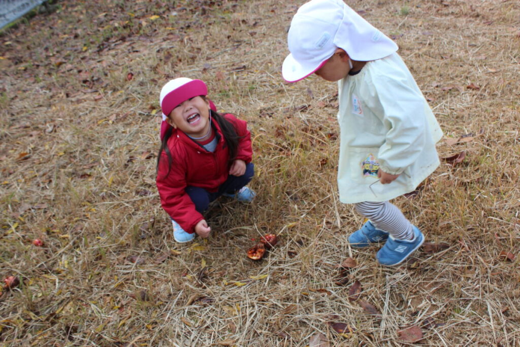 「ありさんいないねえ」と探していたり、木の赤い実をせっせと集めたりと