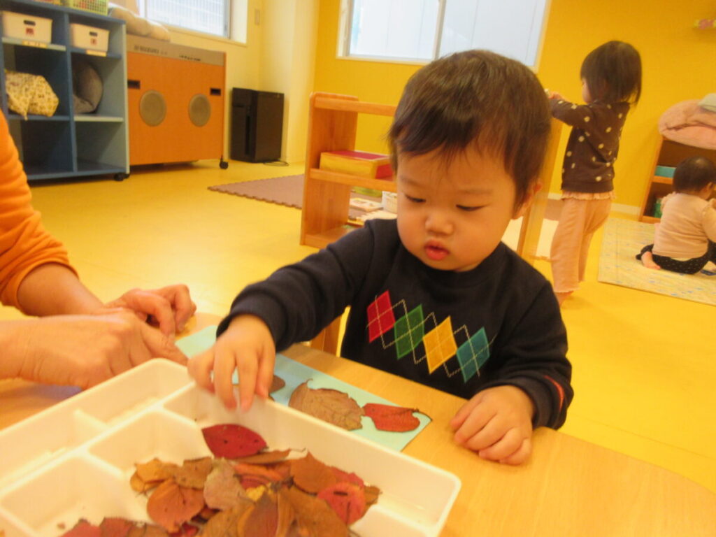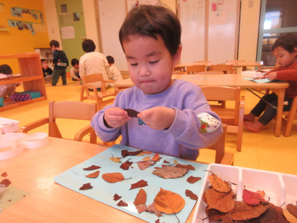 1枚1枚葉っぱを手に取って丁寧に張り付けていました。