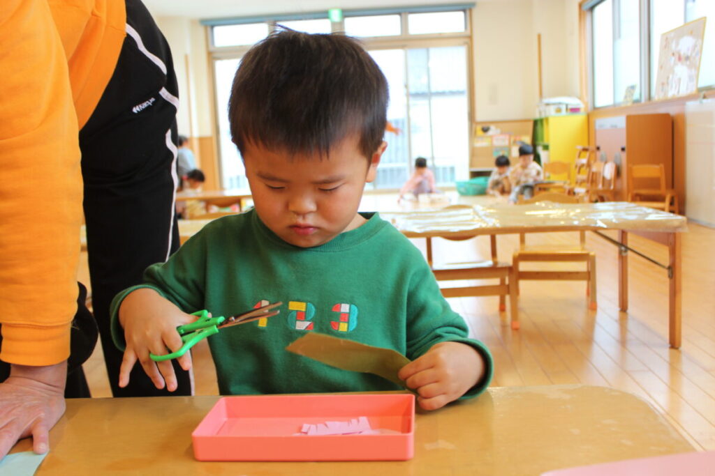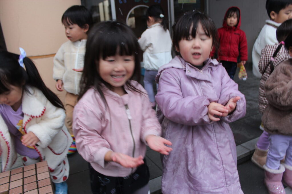 あられキャッチにチャレンジ。見事キャッチ!で大喜びでした。