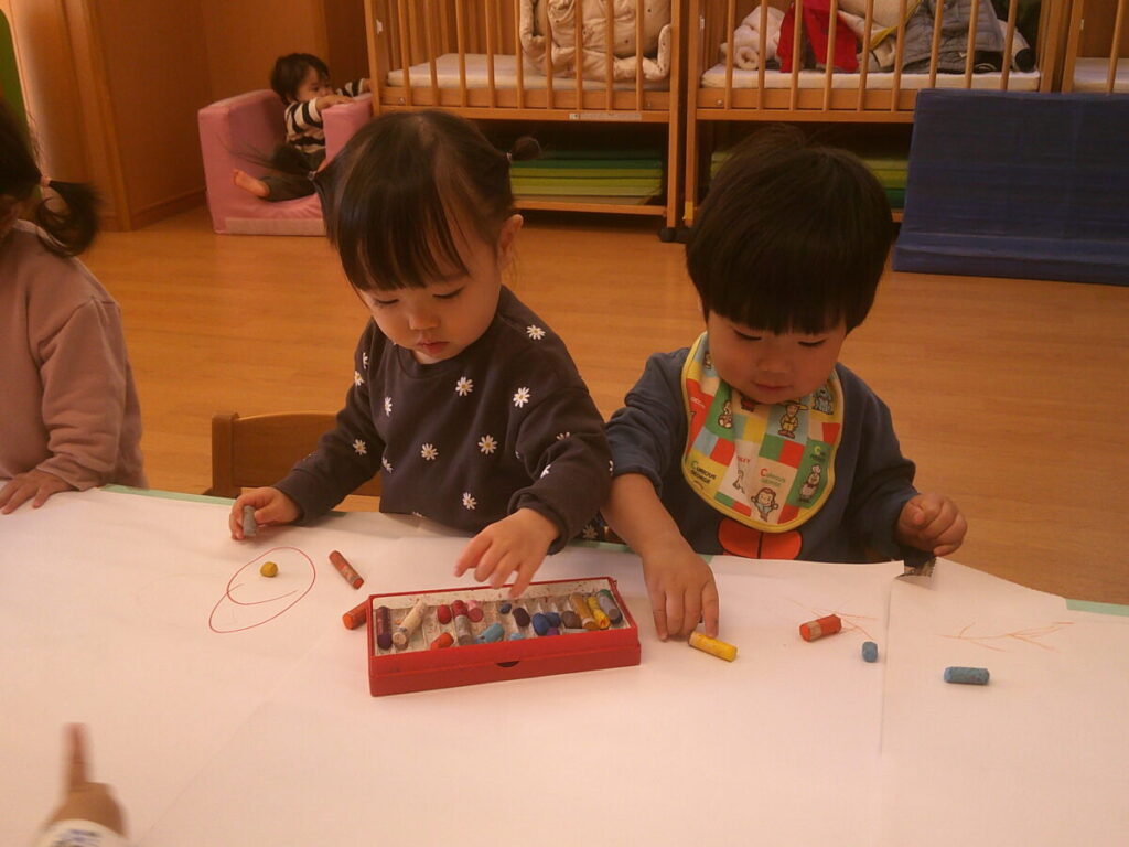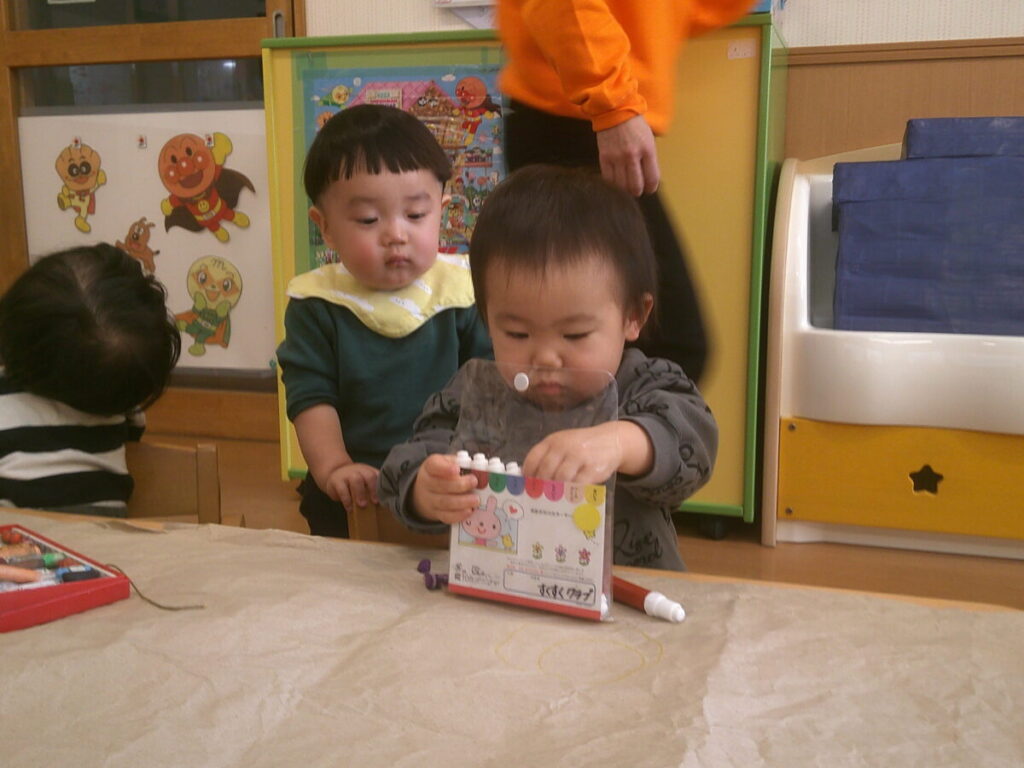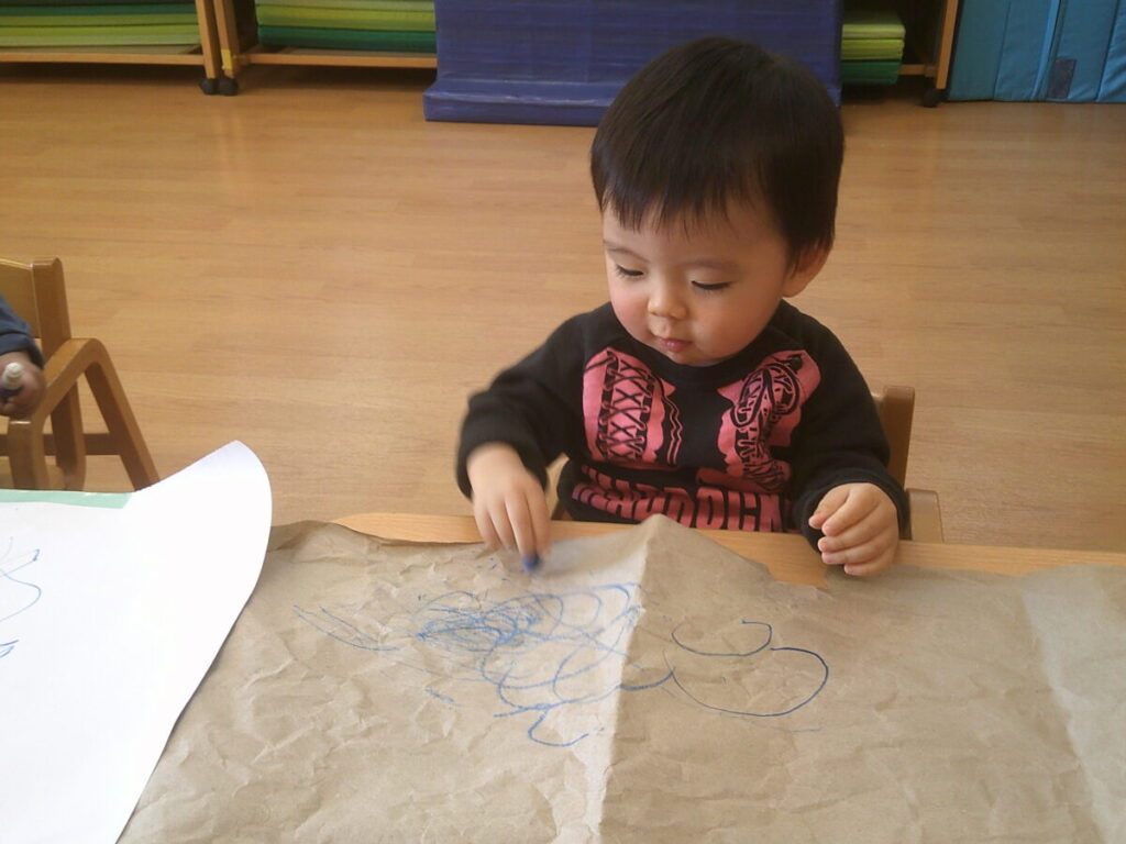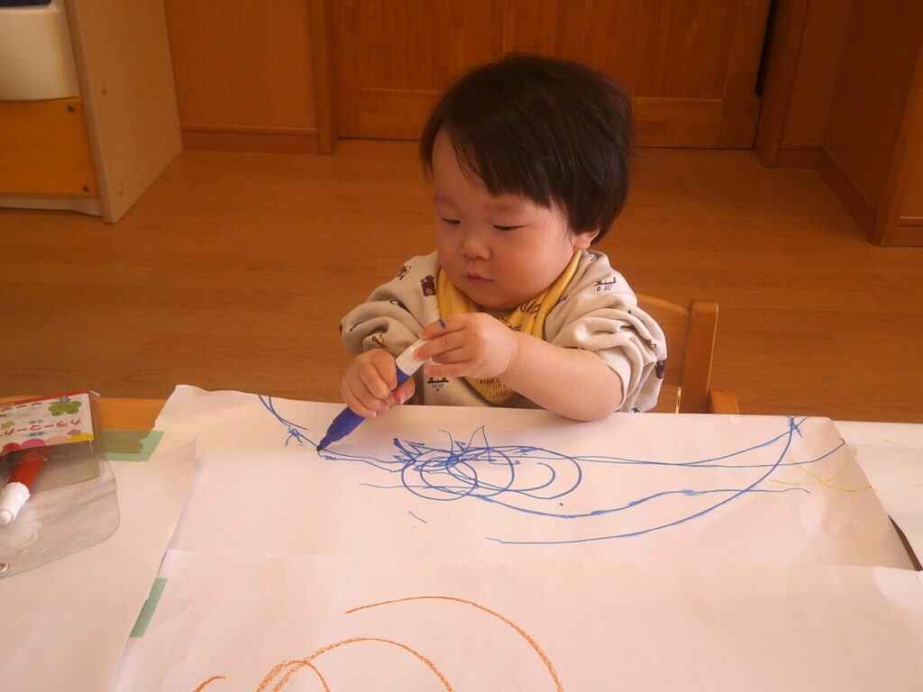 グルグルと丸を描いたりしゃっしゃと線を描いていたりしていろんな絵が出来ていました。