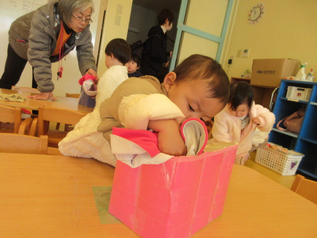 帽子を自分で片付けて・・