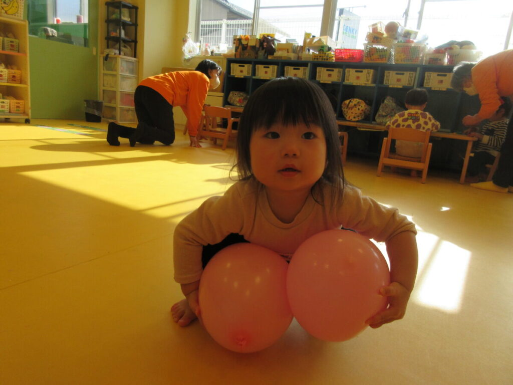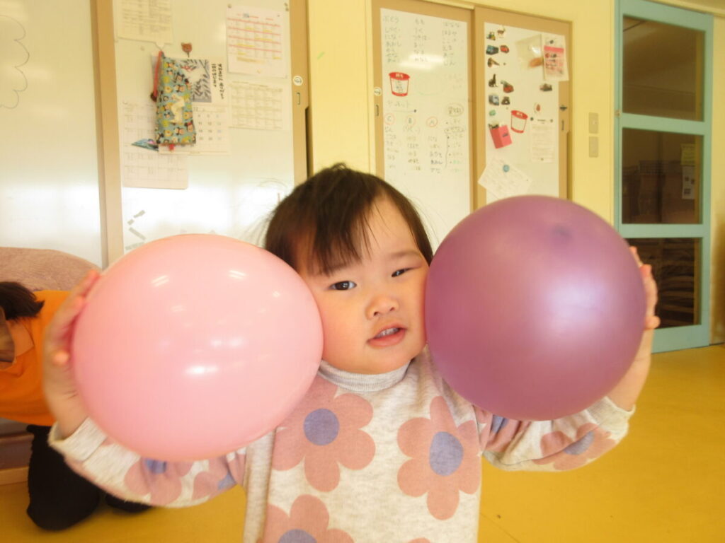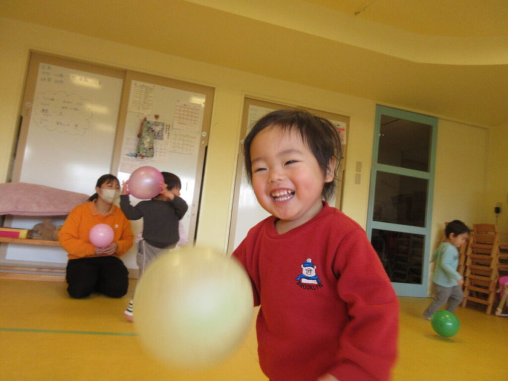 風船と一緒にたくさん体を動かしました。