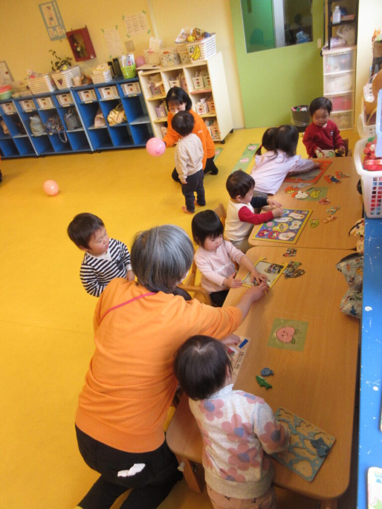 こちらは静の活動。パズルあそび。