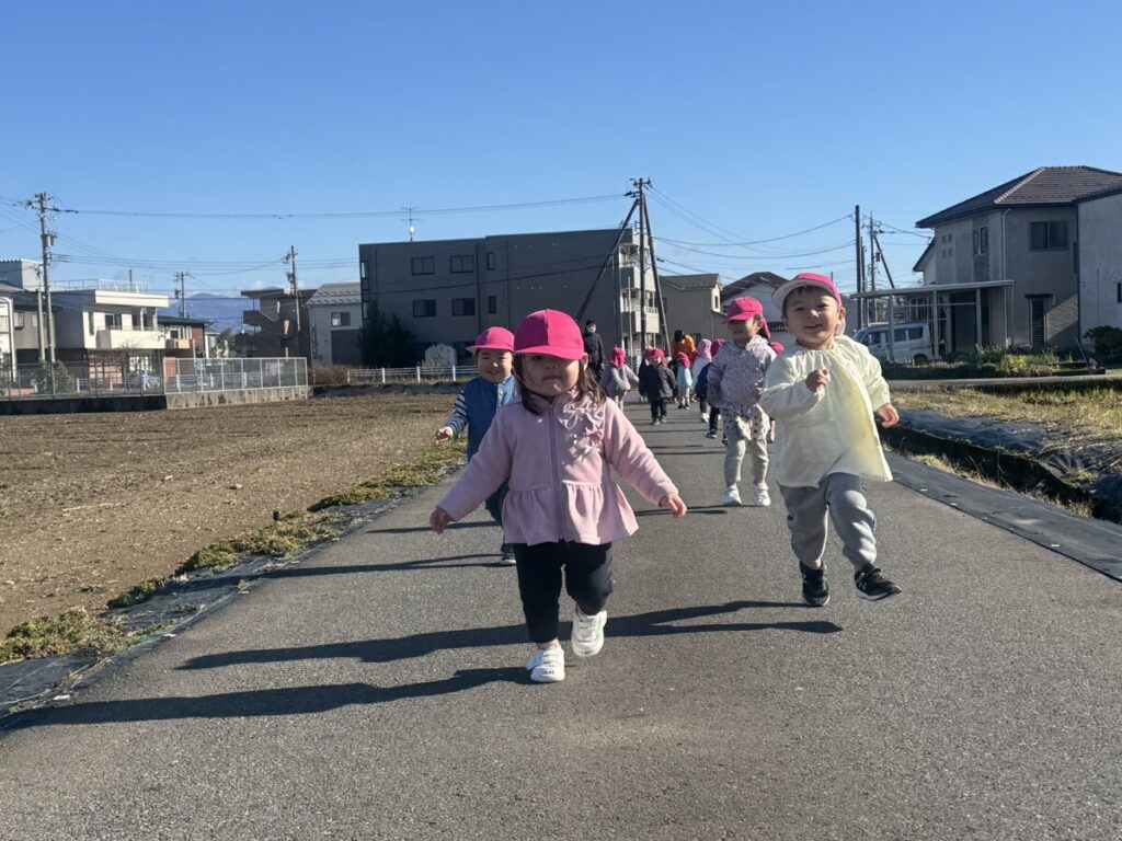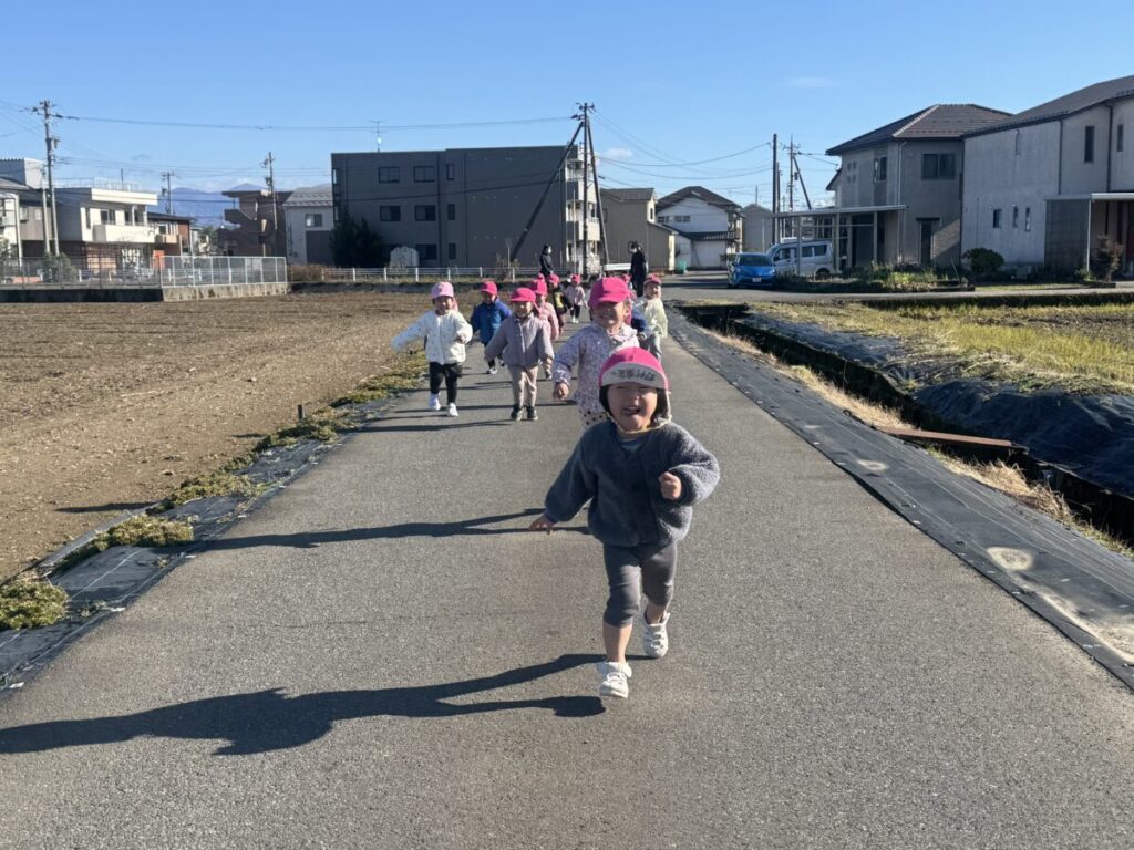 ちゅうりっぷ組さんの散歩は農道までいき、ダッシュ!!!