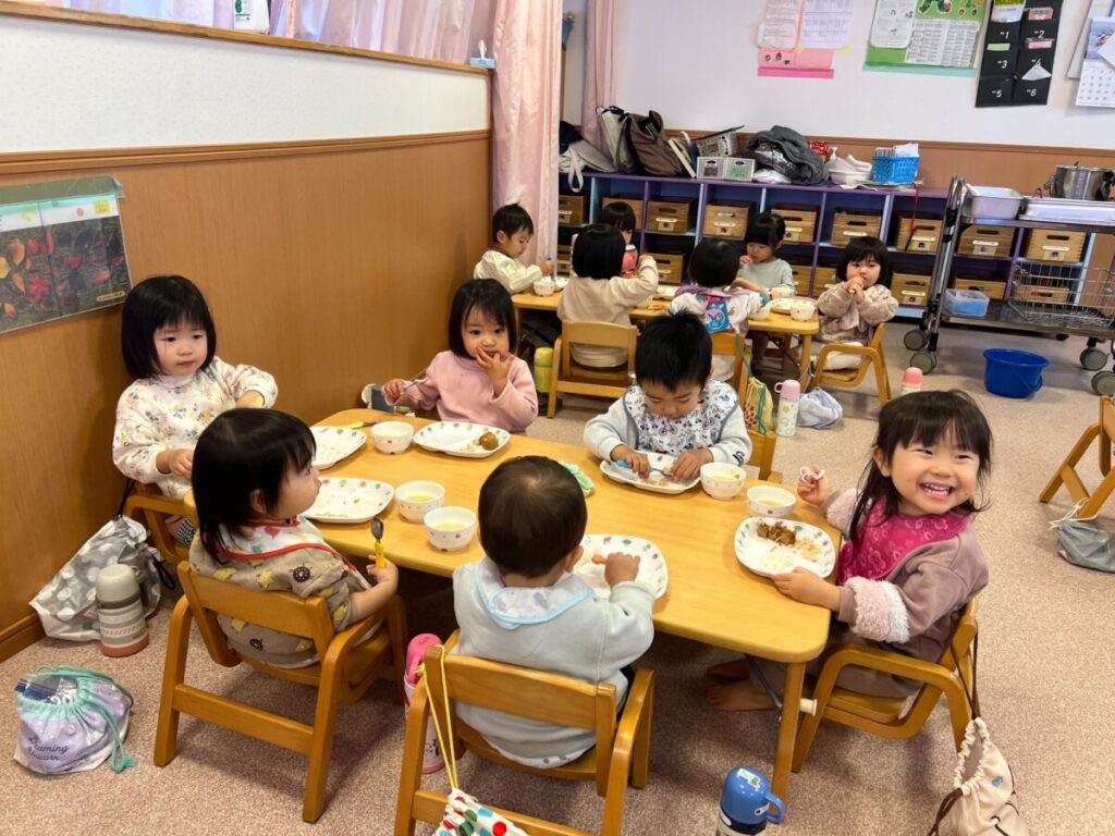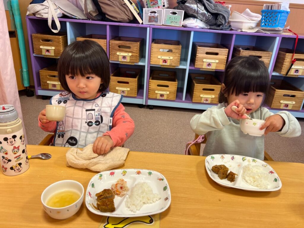 幼稚園に戻り、一緒に給食♪