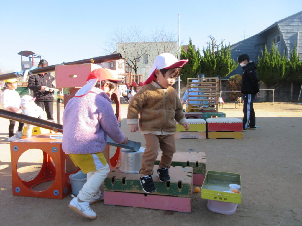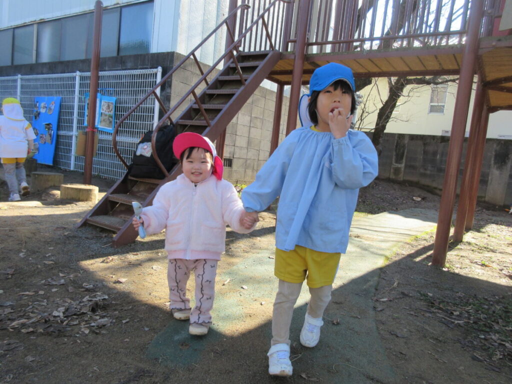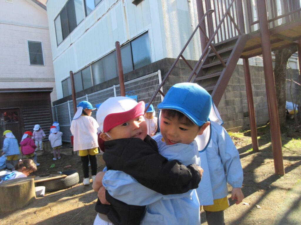 すみれ組。園庭であそびました! 今日はお天気が良く園庭でたくさんあそびました! 朝のコーナーあそびです さて外にいこう! お姉ちゃん~ お兄ちゃん~ お兄ちゃん~ お姉ちゃん~ たくさんあそびました。 来週も元気にきてくださいね。