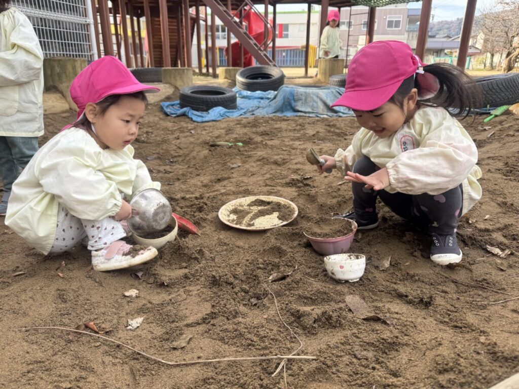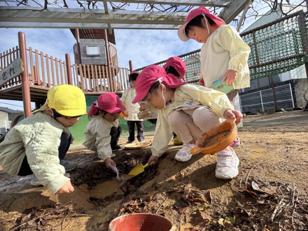 泥水をすくっておままごとをする子や木の棒をいれて魚釣りもしているんです(笑)